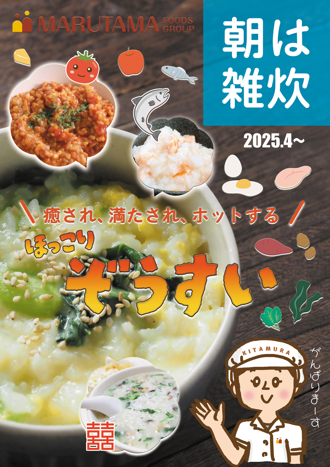 2025年4月より、うぐいすの里では「朝は雑炊で元気良く!」ということで、温かくて、食べやすい雑炊食を中心に朝食を提供することになりました。寝起きで、食欲も湧かないときも、スルスルっと召し上がれる雑炊食は、どのような嚥下状態の方にも好評なメニューです。色々なバリエーションの雑炊をご用意し、朝から元気にお過ごしいただけるよう、調理スタッフ一同、取り組んでまいります。